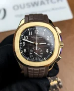 This Aquanaut replica is impressive. The rose gold tone is spot on and the brown dial has great depth. The chronograph subdials are perfectly aligned. Highly recommend for a luxury sports watch.