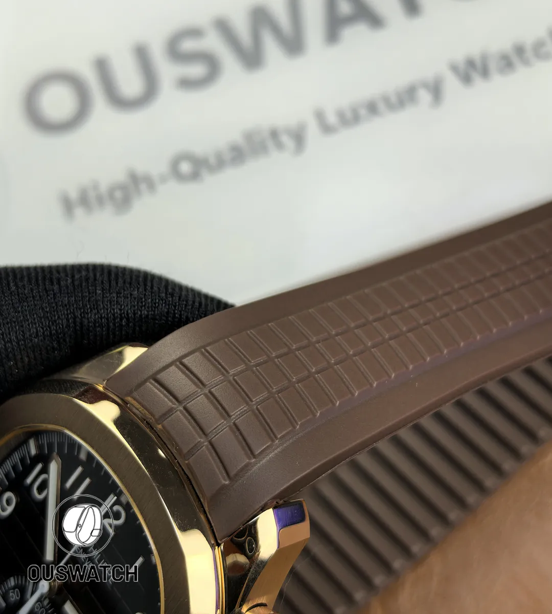 The Patek Philippe Aquanaut Chronograph 5968R-001 Super Clone Watch is a high-fidelity rose gold interpretation of one of Patek Philippe’s most distinctive modern sports chronographs.