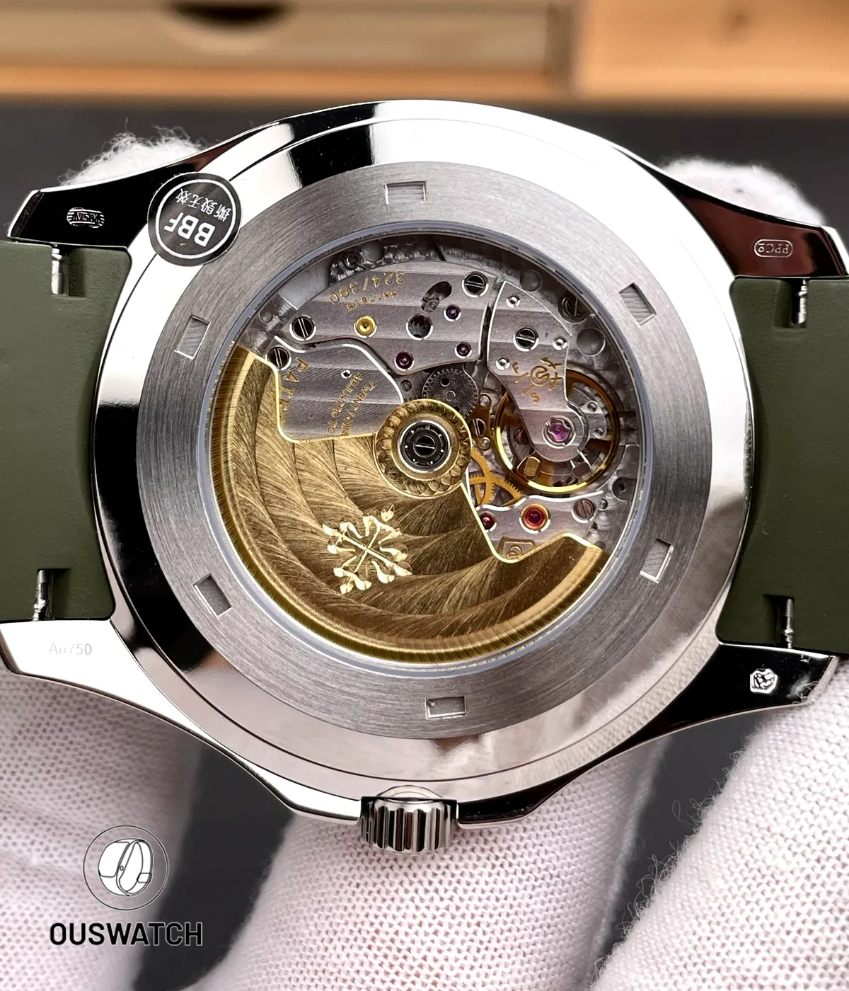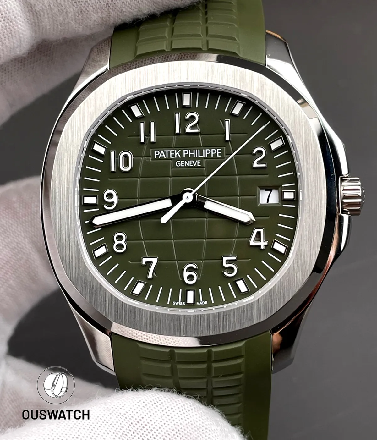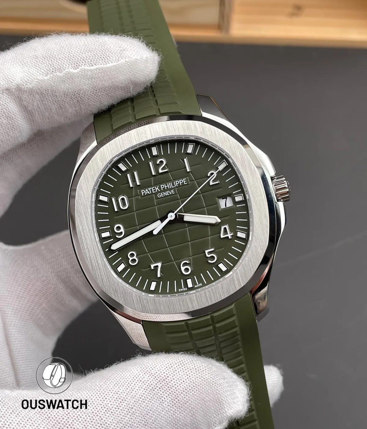 This Aquanaut replica is impressive. The green dial has great depth and the white gold finish is spot on. The rubber strap is quality. The green color is unique and eye catching. Highly recommend.