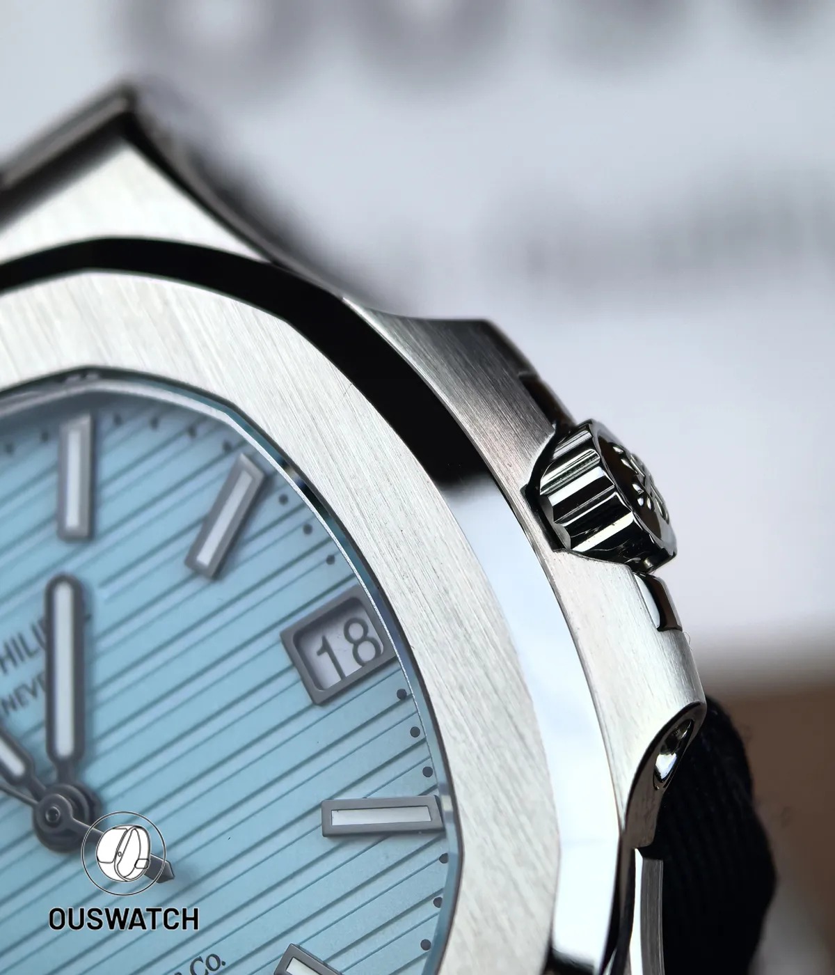This bezel construction mirrors the understated elegance of the original Patek Philippe Nautilus 5711/1A.