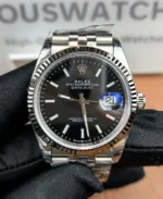 | Case | 36mm in diameter, crafted from solid 904L stainless steel (Oystersteel). The case features the classic Datejust profile with a polished finish on the lugs and case sides, providing the perfect canvas for the bezel and bracelet. The dimensions are a faithful 1:1 reproduction of the genuine model. |