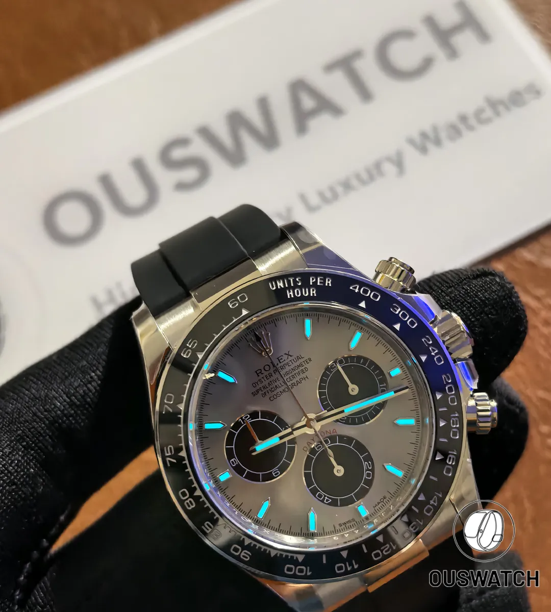 The Ghost Daytona 126519ln is beautiful. The white gold finish is subtle and classy. Black dial contrasts nicely and the Oysterflex strap is comfortable. Very pleased.