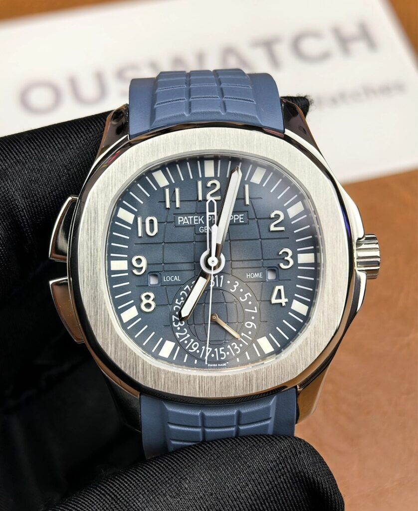 Patek Philippe Aquanaut Travel Time Blue Dial 5164G-001 Rubber Strap Super Clone
